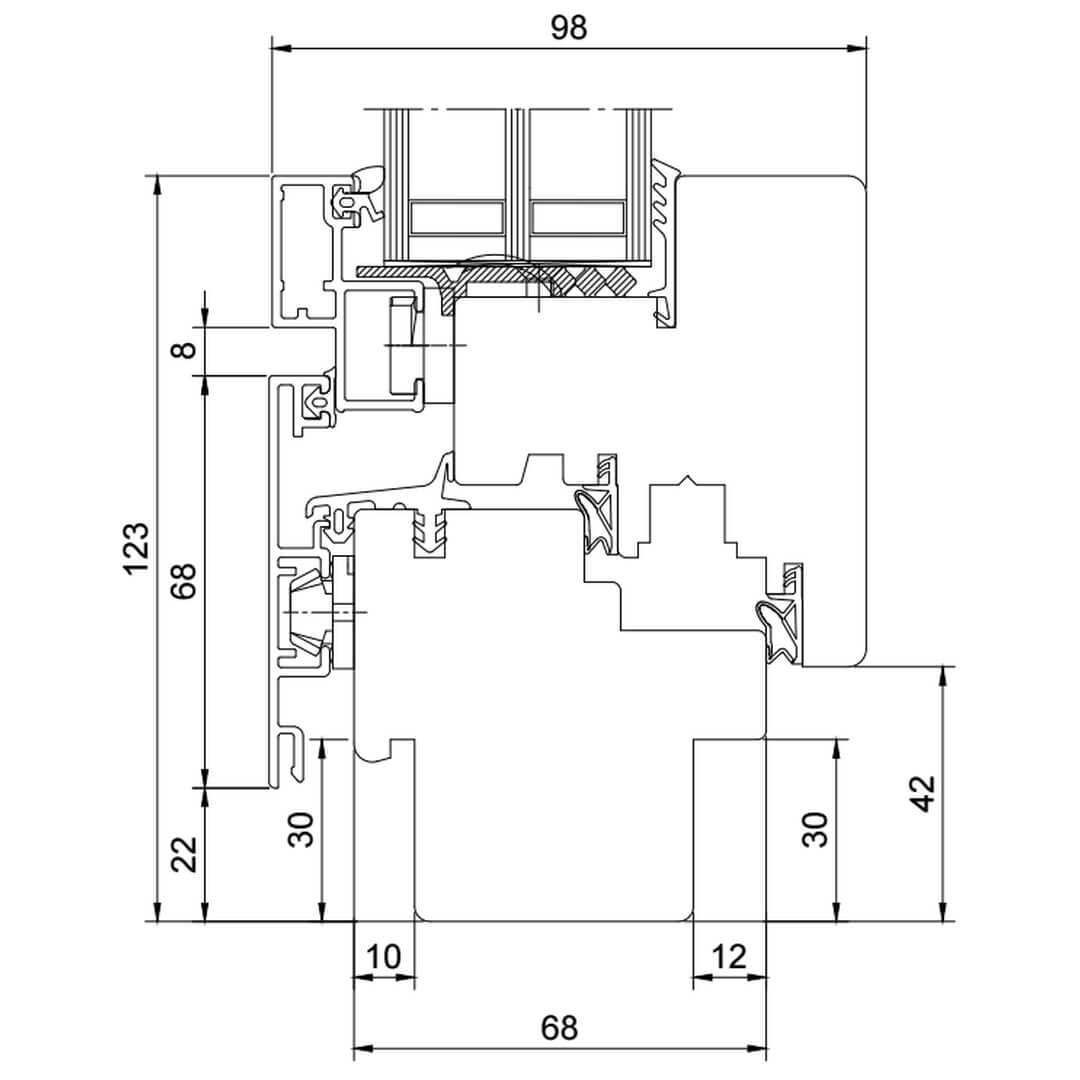 Profilbeschreibung: Holz-Alu-System DRUTEX DUOLINE 68
