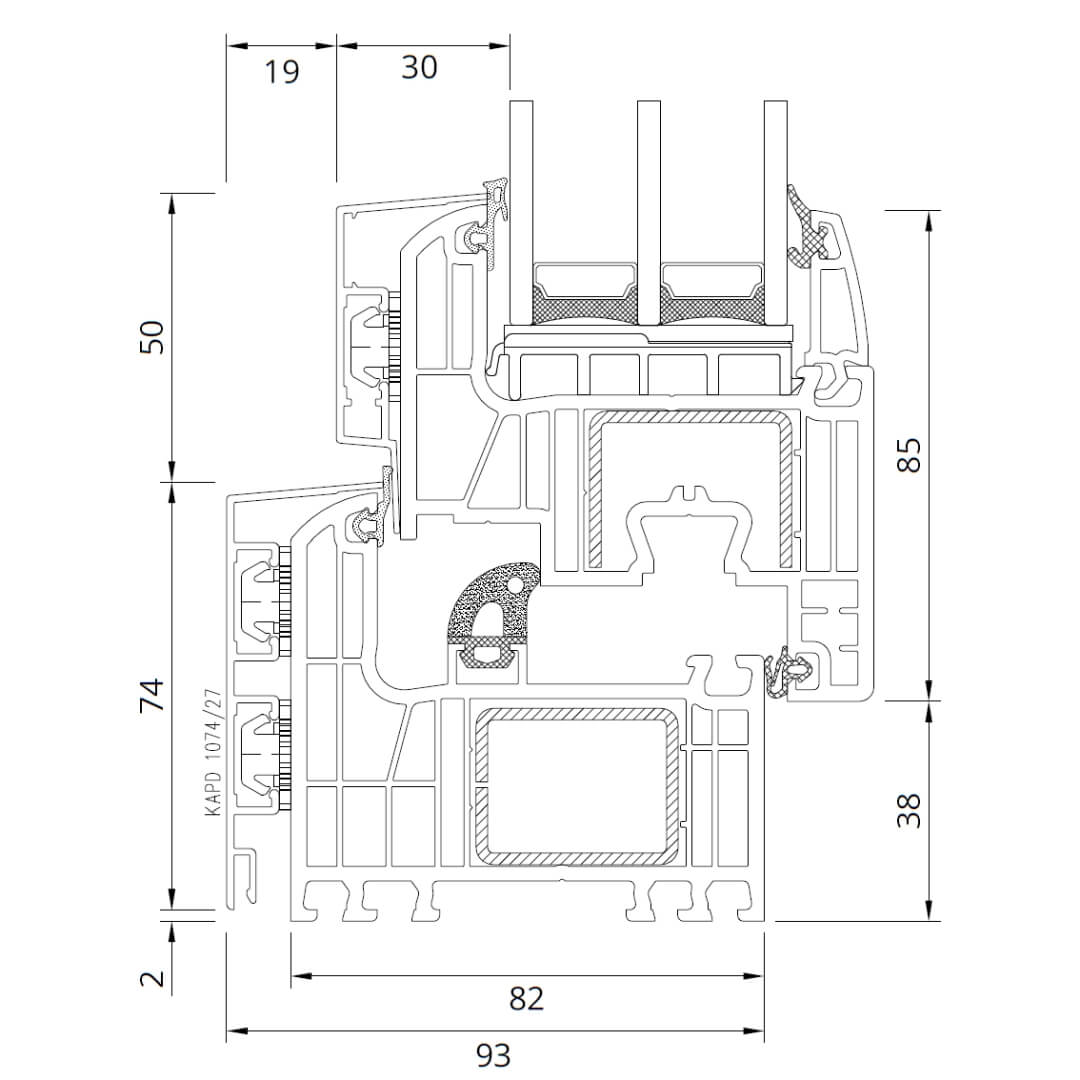 Kammern: 7-Kammer-Rahmen und -Flügelprofil