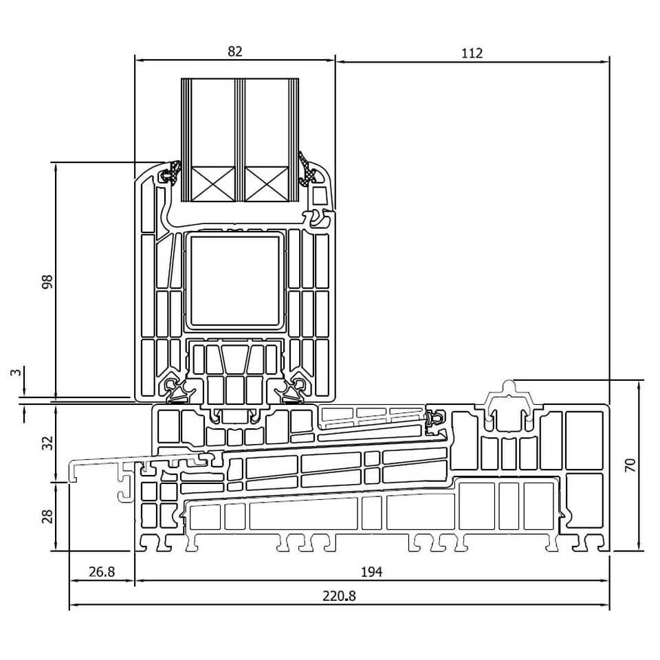 Profilvarianten des DRUTEX IGLO-HS-Schiebesystems