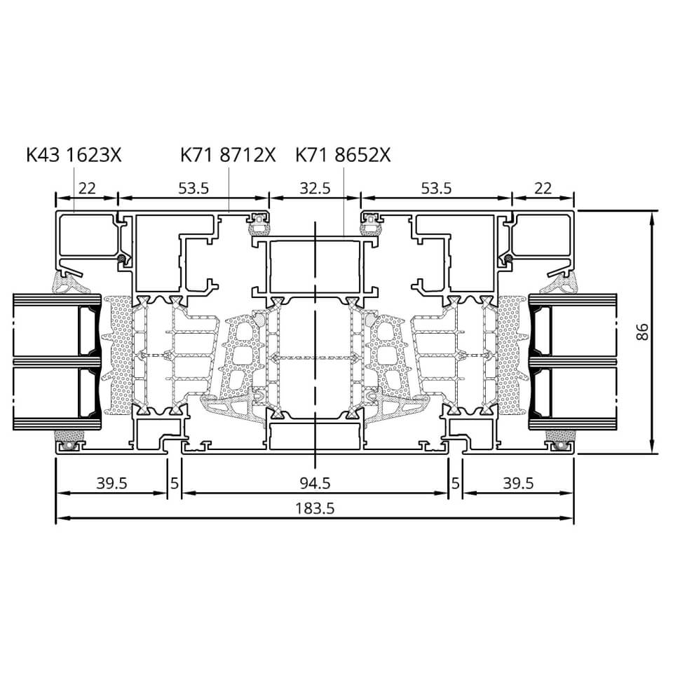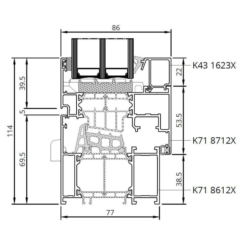 Profilbeschreibung: PVC-System DRUTEX MB-86N SI