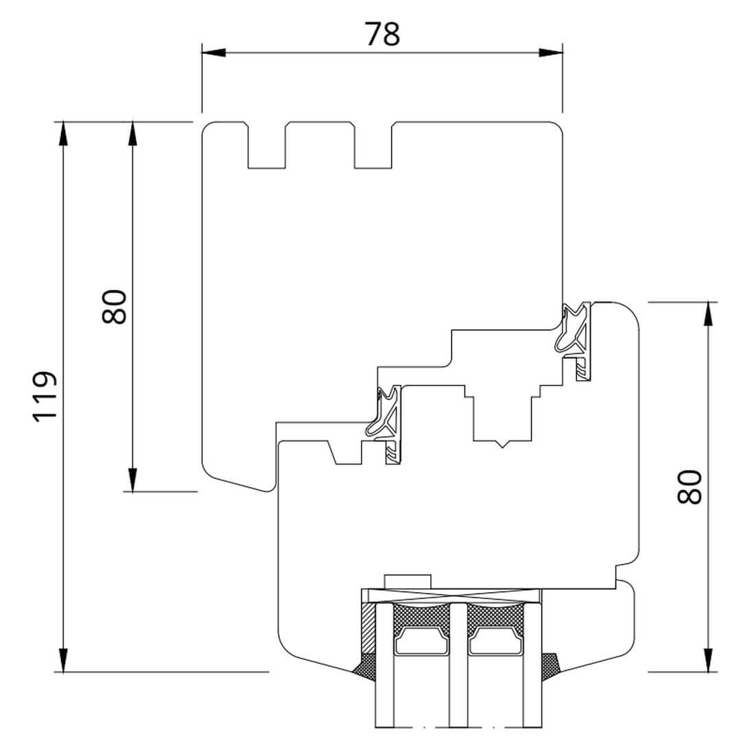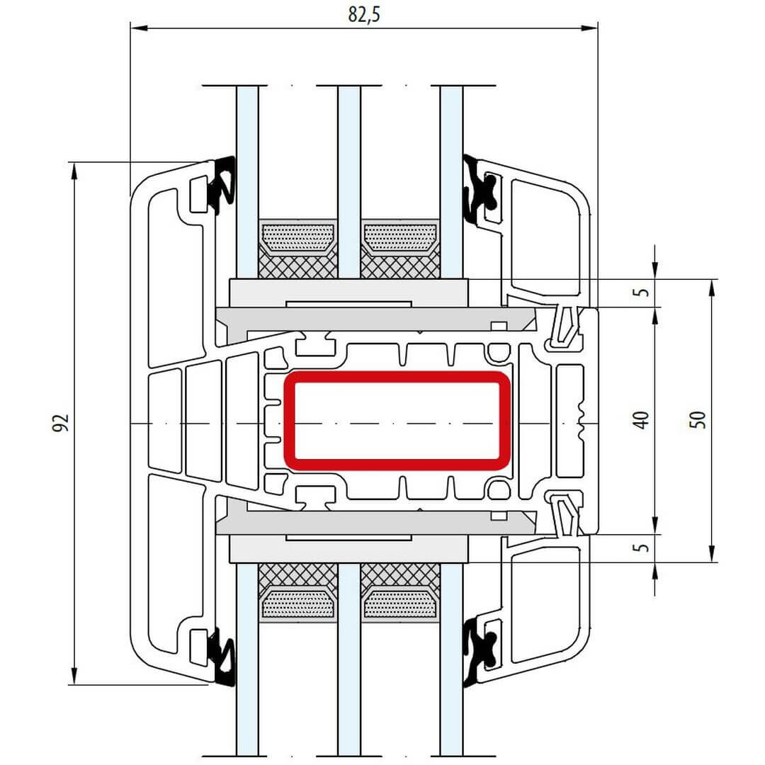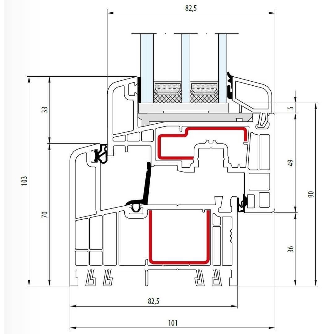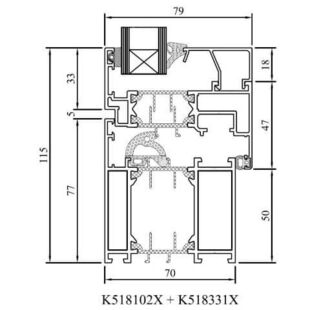 Drutex ALU MB-45 Fenster mit Stulp Schema Drutex ALU MB-45 Fenster mit Stulp